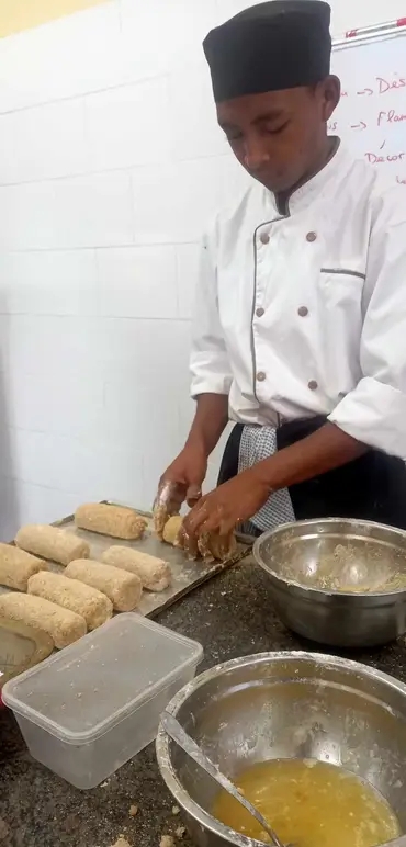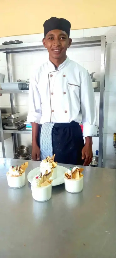 Très vite, j’ai exprimé mon envie de travailler dans la cuisine. Avec l’accompagnement de mon éducateur, j’ai suivi une formation professionnelle en cuisine à l’EFTP Analamahitsy pendant quatre mois. J’y ai appris énormément sur la restauration et obtenu mon attestation après l’examen.